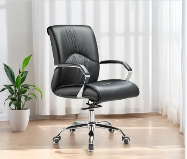The office chair is upholstered with rexine that is comfortable yet durable, making it a smart and stylish solution to any application.With no traditional seat or back board used, this chair provides long lasting support and comfort like no other. It features chrome accents and a slim profile which provide a contemporary look and maximum durability. It also offers simple and intuitive controls such as pneumatic seat height adjustment, 360 degree swivel, tilt tension and tilt lock for added customizability and comfort.The fixed loop arms add to the unique appeal. The comfort, stylish look, and price point of this chair make it a perfect addition to the office, whether at work or at home. This chair meets or exceeds industry standards for safety and durability